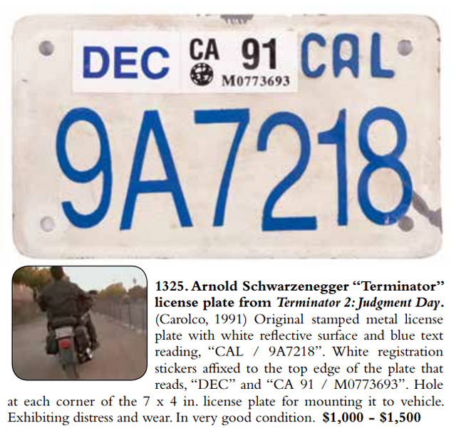 Покрај ова на аукциската куќа Profiles in History, ќе постави на аукција други реквизити од истиот филм како кукли, макети и облека. Воедно таму ќе биде понудена и регистрациската табла на моторот “CA 91 9A7218” која ќе се продава одделно од мотоциклот, а се очекува сума од 1000 до 1500 долари.