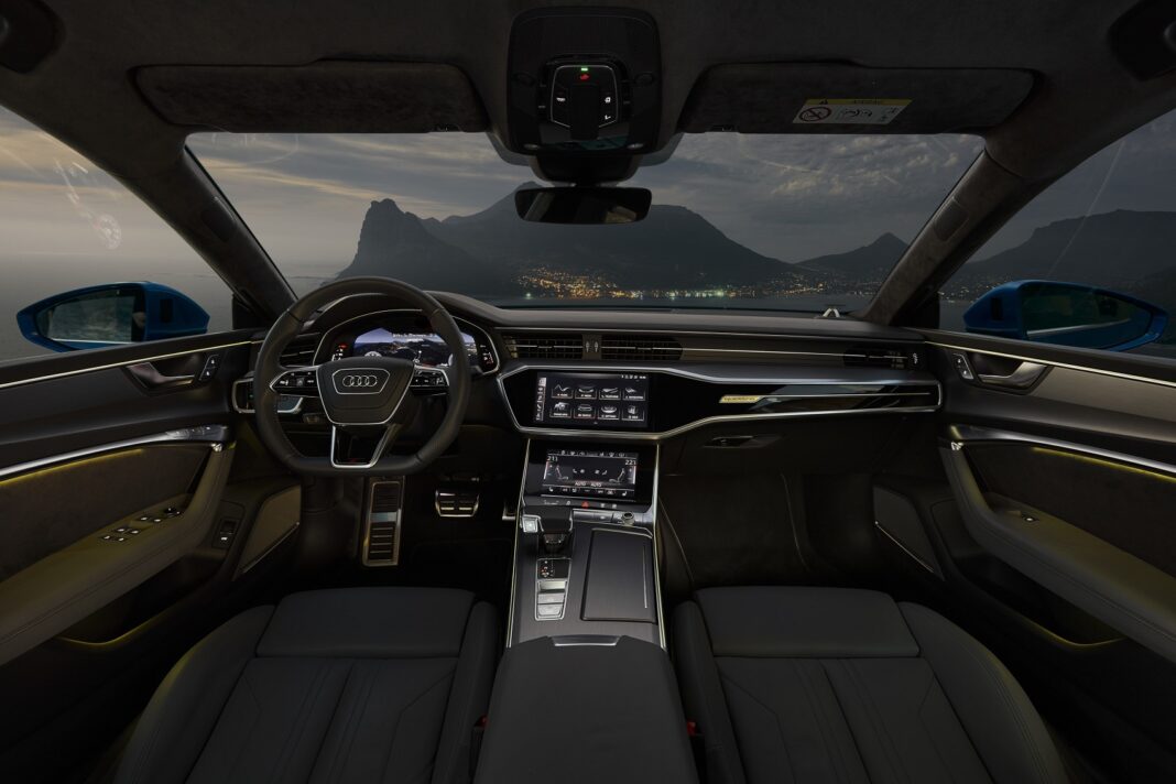 Дизајнерскиот јазик во внатрешноста на новиот Audi A7 Sportback е симплифициран и чист. Хоризонталните линии и елеганцијата на инструмент таблата пренесуваат чувство на пространост. Централната конзола е наклонета кон возачот и го нагласува спортскиот карактер на Гран Турер. Во внатрешноста, архитектурата на кокпитот и мониторот MMI се спојуваат за да формираат хомогена површина. Повеќето функции на возилото може да се контролираат преку двата екрани. Горниот дисплеј е речиси невидливо интегриран во контролната табла. Изборот на бои, материјали за навлаки и внатрешното осветлување совршено се вклопуваат во футуристичката атмосфера на A7.