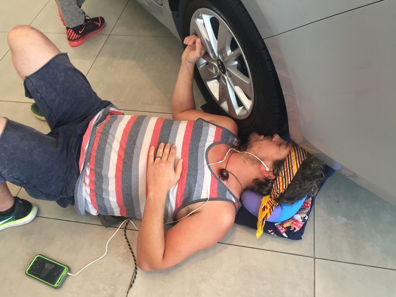 На секој час сите имале по десет минути пауза да ги релаксираат усните. Немало правило каде вашата усна ќе биде залепена за возилото, дали за метален дел, пластика или гума. Најважно било да останете со усната за површината.
