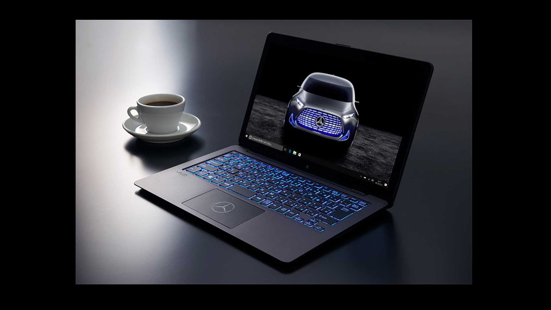 Двајцата гиганти се здружија да креираат единствен компјутер, кој во себе има вклучено повеќе дизајнерски симболи од автопроизводителот, меѓу кои и слика од Vision Tokyo концептот или класичен 300Sl како позадина на екранот, како и неколку трикраки ѕвезди. Производот се издвојува по тоа што на секое вклучување ќе чуете и брмчење од мотор, иако нема информации од кој модел на авторпоуизводителот е позјамен звукот.