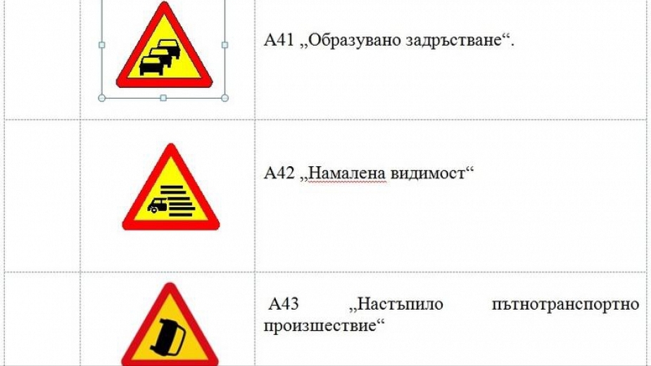 Се предлага и воведување на три нови знаци за предупредување за организација на привремен сообраќај. Тие се во групата А и ќе сигнализираат жолто-жолто. Знакот А41 – „Формиран метеж“, ќе се користи за да сигнализира на патните делови каде што ќе се појави метеж што возачите можеби нема да го забележат навремено.