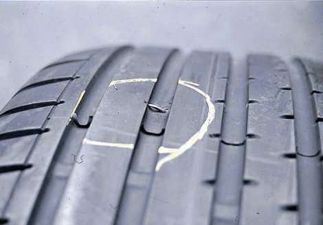 Ивиците се ослабени, а веројатно внатрешната конструкција е оштетена. Овде се заканува пукање на гумите, па подобро е ваквата гума што побрзо да ја замените.