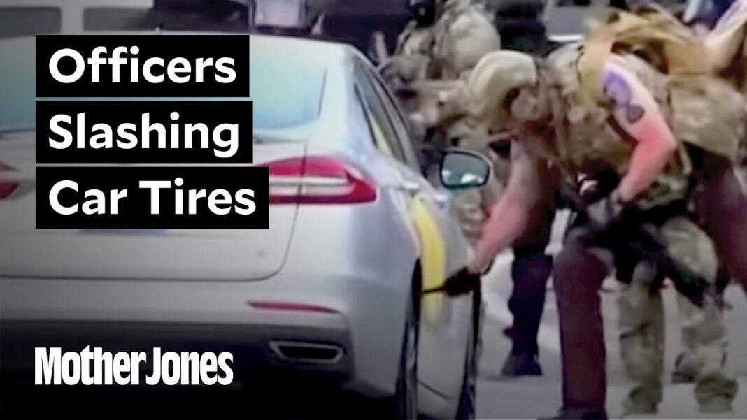 Имено, на интернет се појавија неколку видеа на која се гледа како полицијата и воената гарда ги буши гумите на возилата кои се наоѓаат на самите места каде што се протестира и блиската околина. Се бушат гумите на сите возила вклучувајќи ги и оние на новинарските екипи, владините служби…