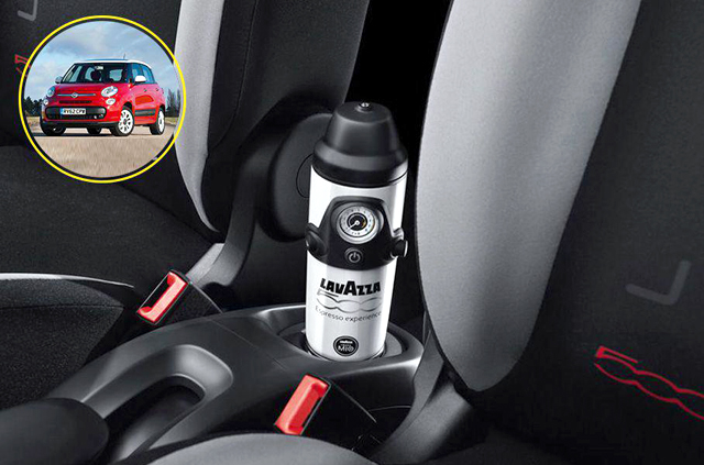 Италијанците не можат да го замислат животот без чаша убаво еспресо. Fiat 500L ги задоволува овие потребни со вградување на кафематот Lavazza 500 Espresso Machine. Уредот работи на 12 волти и со специјални капсули.