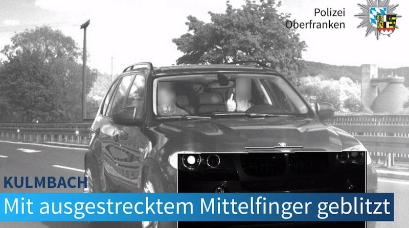 Причината за оваа голема казна е тоа што тој на полициската камера и покажал среден прст па надлежната полиција во Оберфранкен веднаш го пријавила случајот. Неименуваниот возач пак, веднаш бил пратен на суд во Кулумбах каде судот експресно му ја изрече оваа казна.