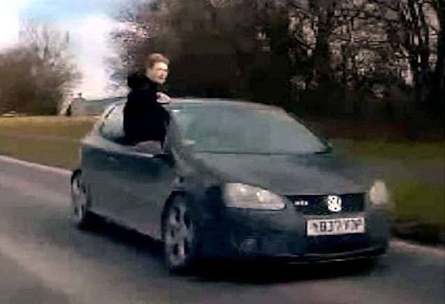 Кај нас може ова да мине неказнето, но во В.Британија за вакви прекршоци следува и затвор. Еден 19-годишен затворски чувар бил осуден на 12 месеци затвор, од кои најмалку половина од нив ќе мора да мине на неговата поранешна работа. Тој бил снимен како седи на прозорецот на неговиот Golf GTI со брзина од 80 км/ч на патот во Ланкастер, Велика Британија.