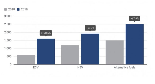 Според статистиката на ACEA, во 2019 година во Европа биле регистрирани 1.607 нови електрифицирани автобуси, што е за 170,5% повеќе во споредба со 2018 година. Најсериозната побарувачка на такви транспортни средства има во Холандија каде што биле реализирани 381 примеок, со што се наоѓаат пред Франција (285) и Германија (187).