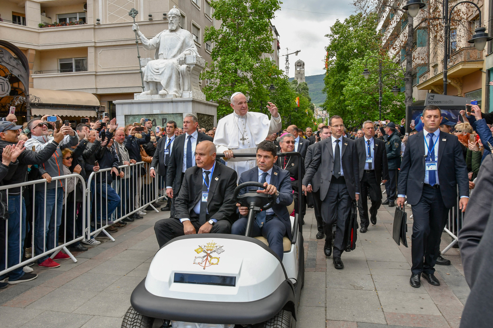 Во мај годинава Папата ја посети и Македонија и тогаш се возеше со неговиот папамобил кој беше многу едноставен као возило за голф само отворено. Така можеше да се поздравува со насобраниот народ и истовремено да можат сите одблизу да го видат.