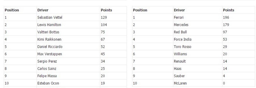 Себастијан Фетел го зголеми водството во генерален пласман во конкуренција на возачи во Формула 1 со триумфот во Монте Карло. Сега Фетел има предност од 25 бодови во однос на Луис Хамилтон. За Ferrari ова е прв триумф на улиците во Монте Карло каде „црното коњче“ последен пат победи во 2001 година.