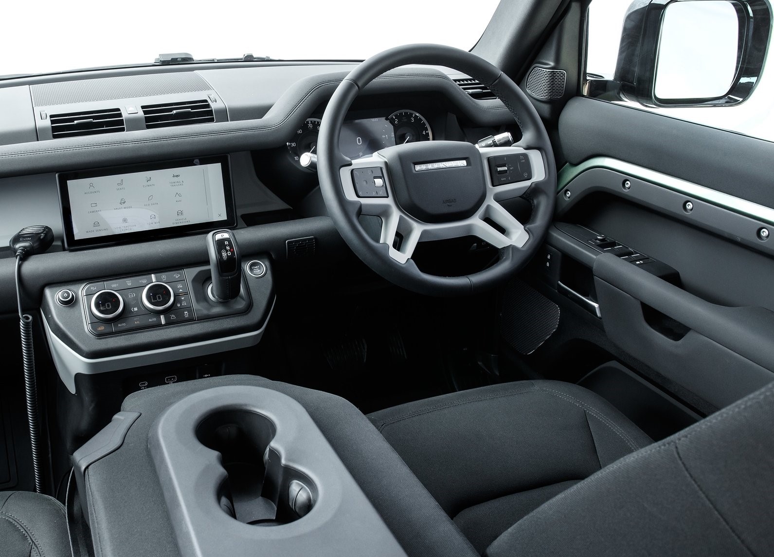 Од бројните системи со кои е преполн Defender ќе ги спомнеме, All Terrain Progress Control, и Clearsight ground view + 3D surround camera (можност да го гледате патот под /низ хаубата и моторот, потоа Adaptive Cruise Control + Speed Limit, Break Collision Monitoring, Rear Traffic and Blind Spot, Wade Sensing, Matrix LED светла … Во кабината е 12,3 interactive Driver Display, Head up display, Meridian audio surround со 14 звучници …