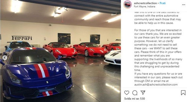 Компанијата Ash Crest Collection од градот Форт Вејн од сојузната американска држава Индијана продава дел од својата колекција на автомобили со цел да помогне во борбата против коронавирусот.