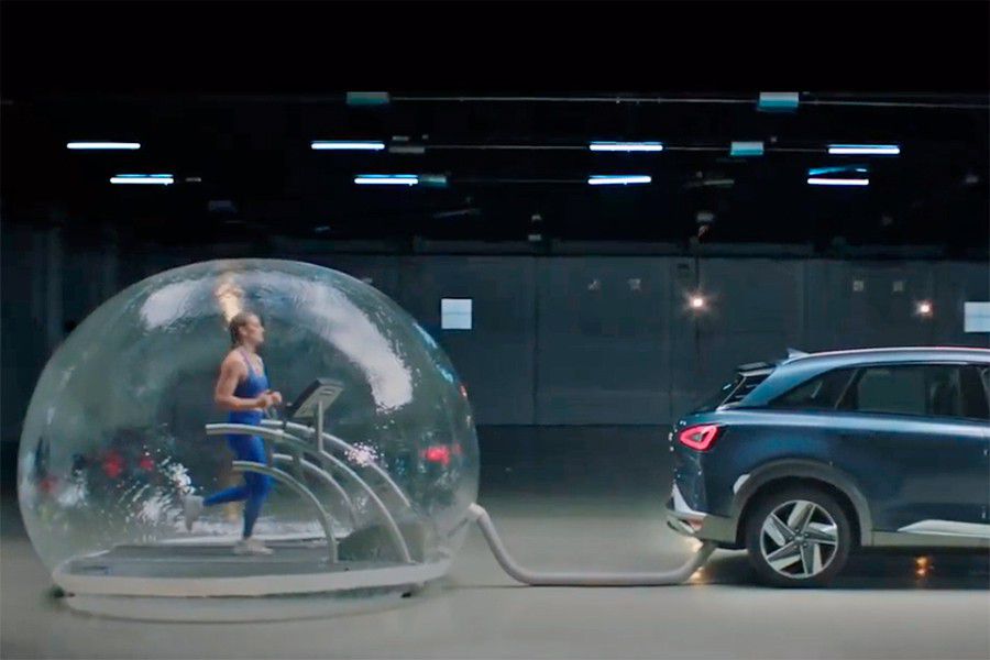 Филијалата на Hyundаi во Шпанија избра нестандарден начин да ја докаже еколошката чистота на кросоверот Nеxо. Компанијата објави видео во кое познатата пливачка од Шпанија, Миреја Белмонте тренира во балон поврзан со ауспух од автомобил.