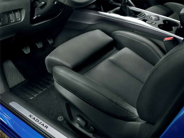 Внатрешноста на Kadjar е освежена со едвај забележливи елементи. Намалена е големината на црната пластика на предниот браник, сменет е обликот на воздушните перничиња, додека фаровите за магла се вградени. На предната страна има повеќе хром, кој според Франзуците му дава повеќе визуелна широчина на возилото.