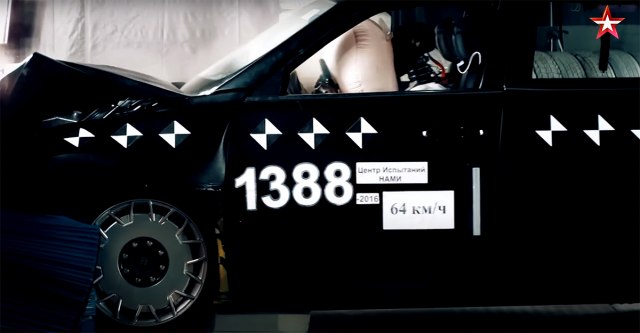 Рускиот производител на луксузни автомобили Aurus, најпознат по производството на лимузини за претседателот Владимир Путин, објави видео кое меѓу другото содржи и снимка на тестот за безбедност на овој луксузен автомобил.