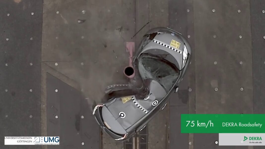 Како изгледа удар во столб со 84 км/ч. (ВИДЕО)