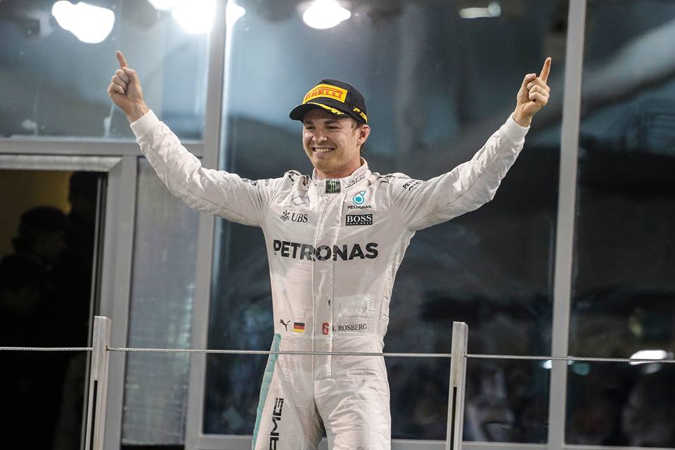 Германецот Нико Розберг е новиот светски првак во Формула 1, иако на последната трка во Абу Даби го освои второто место. Тоа му беше доволно да ја освои титулата, прва во неговата кариера, со што стана 33. светски првак. По 34 години откако неговиот татко Кеке Розберг беше светски првак во семејството повторно се враќа титулата.