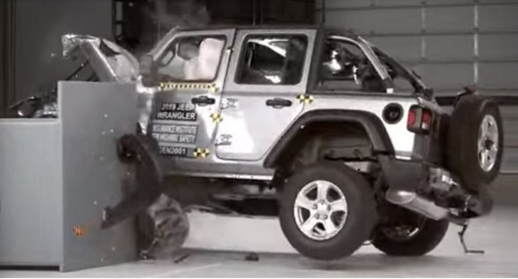 Американски IIHS објави видеозапис на кој се гледа како Jeep Wrangler од 2019 година се превртува во текот на тестирањето на страната на совозачот – што се случува првпат воопшто. Како што може да се види од повеќе агли Wangler се заби во фиксна пречка, а предниот крај се прекршува. И ако тоа може и да се очекува – џипот потоа се превртува.