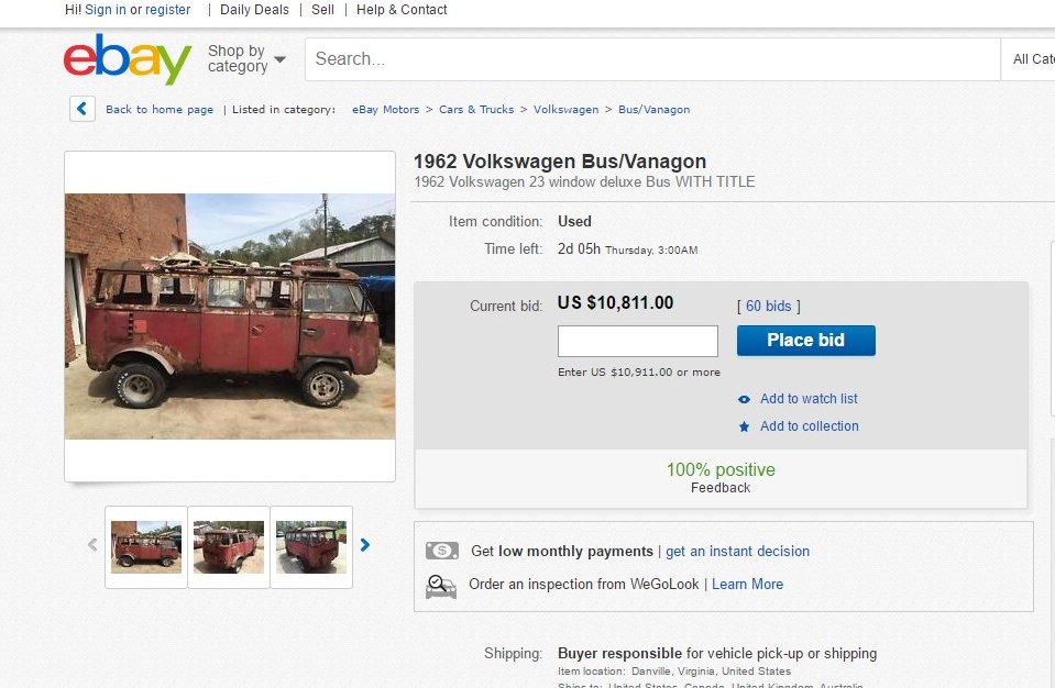 На аукција на еBay секогаш може да се најдат интересни, а понекогаш и чудни работи. Цените зависат од наддавањата, а не ретко сумите се многу високи со оглед на изгледот и состојбата на она што се продава. Така е случајот и со овoj VW ван. Кога ќе го погледнете ви станува јасно дека тоа е само куп железо и крш. Но, некои не мислат така.