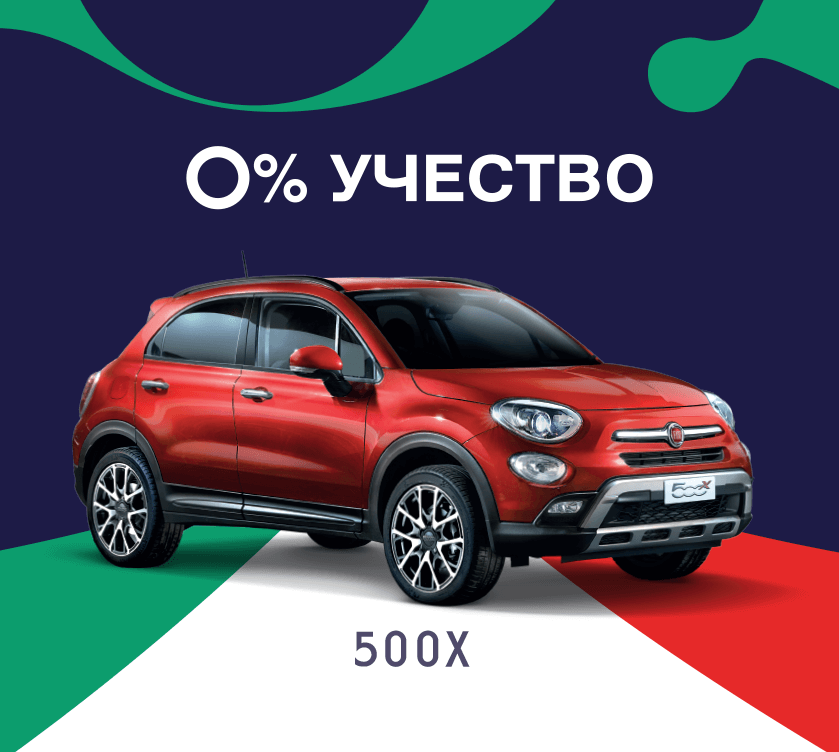 “Fiat Easy Buy” ви нуди единствени финансиски поволности за да набавите еден од новите модели на Fiat 500, 500L или 500X. За прв пат автомобилски кредит со 0% учество, до 5 години рок на отплата, 5.0% фиксна каматна стапка, 0% трошоци за обработка.