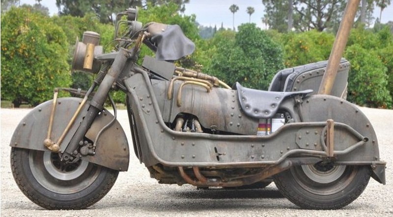 Можеби некој ќе ја нарече лоша креација која само добро изгледа, но овој мотоцикл со три тркaла и приколка како римска кочија е во возна состојба. Го чека својот нов сопственик, кој на аукција ќе треба да понуди најмалку 5.000 долари колку што е проценет мотоциклот.
