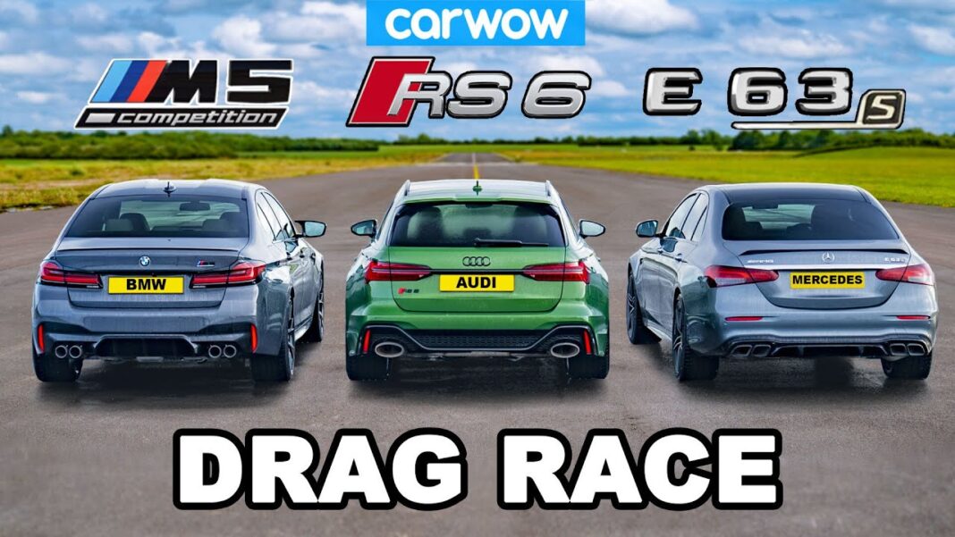 BMW M5 v Audi RS6 v AMG E63 S – кој Германец најбрзо ќе ја помине целната линија? Одговорот на ова прашање го дава екипата на британскиот магазин carwow чие видео за неполни 24 часа собра над 1 милион прегледи.