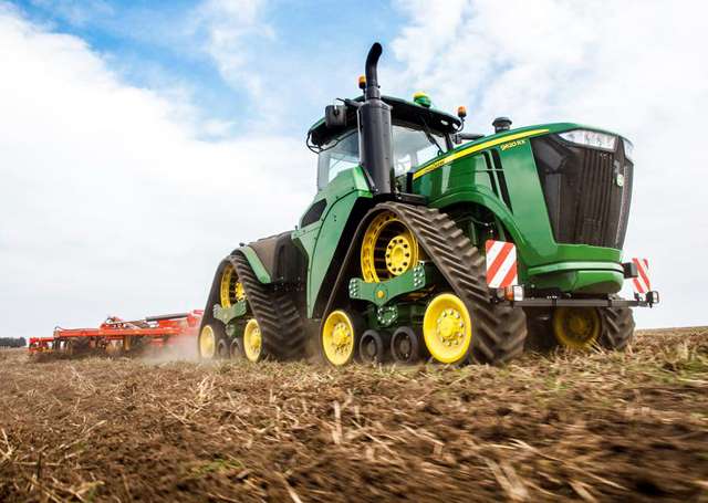 Благодарение на четирите Camso Duradrive 6500 најмоќниот трактор на John Deere изгледа неверојатно агресивно. 15-литарскиот мотор Cummins QSX15 развива 620 коњски сили.
