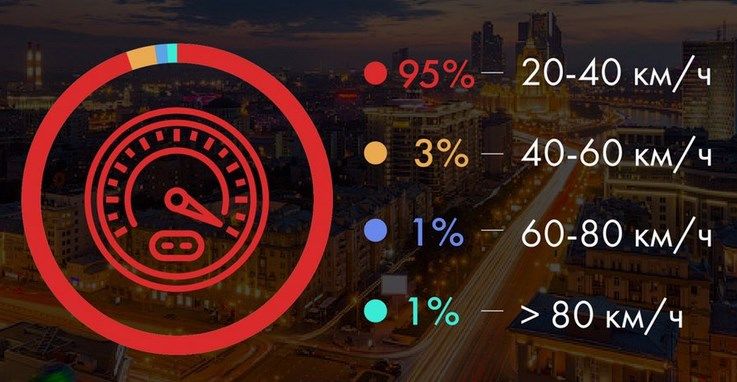 Истражувањето во однос на темата за автомобилските несреќи покажува дека 56% од сите сообраќајки се порад преголема брзина. Уште поневообичаен факт е дека за 95% од судирите, каде причината е во превисоката брзина, се случиле при возење со поголема брзина од 20 до 40 км/ч.