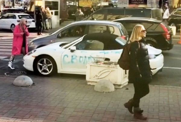 Случката се одвива на улица во центарот на Киев, која е полна со минувачи. Девојката прво со спреј на автомобилот напиша „Сволочи“ (Копилиња), а потоа се нафрли на скапото Porsche и почна да удира. Потоа направи пауза и напиша нова порака „Изрод“ и продолжи да удира, по што успеа да ја пробие шофершајбната.