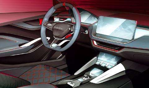 Покрај тоа концепцијата ќе го покаже новиот дизајн со кој ќе бидат „облечени“ спортско ориентитераните модели на брендот, носејќи ја ознаката RS. Откако покажа како изгледаат возилата на Skoda однадвор, сега се појави и информација за новите внатрешни решенија.