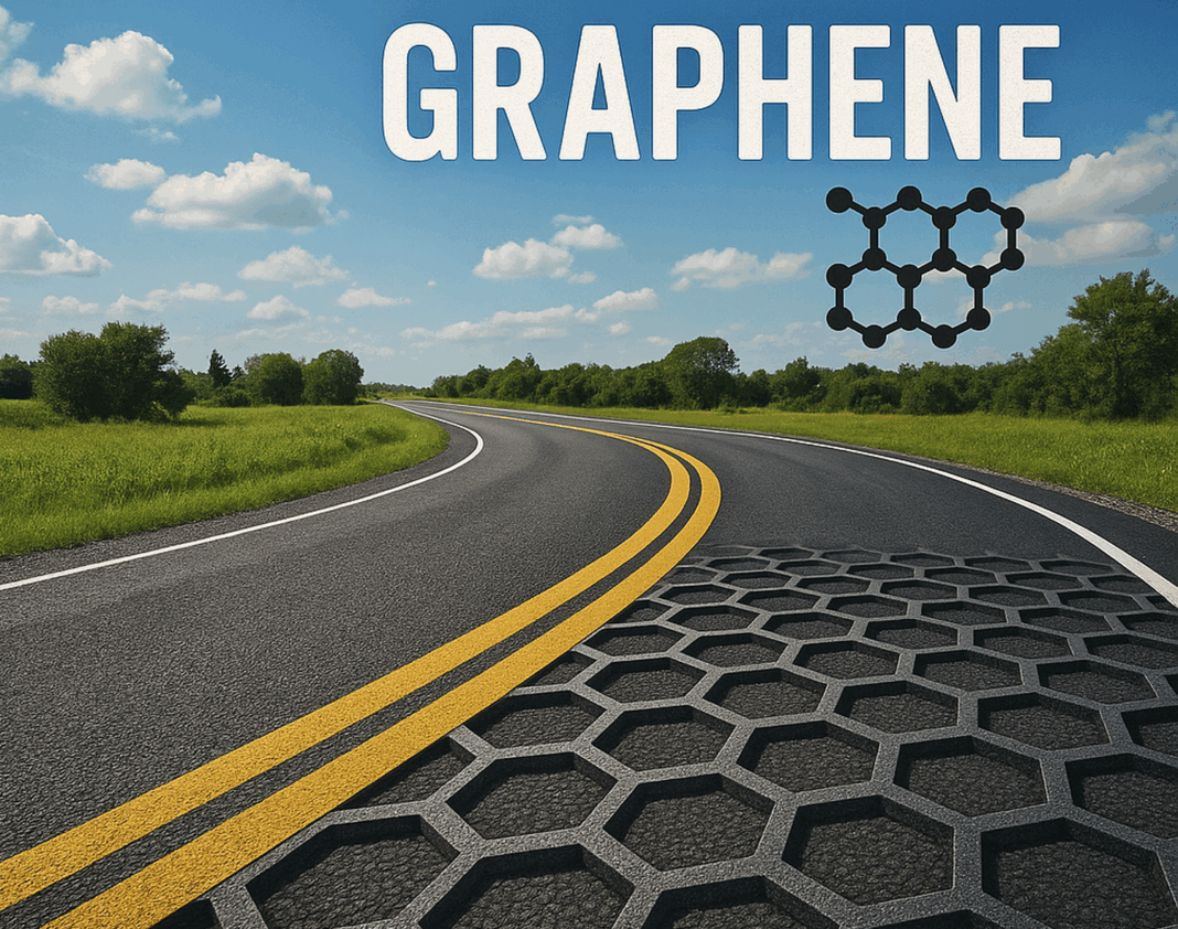 Графенот е ултратенок, двoдимензионален материјал составен од атоми на јаглерод распоредени во форма на саќе. Тој е милион пати потенок од човечко влакно, а сепак 200 пати поцврст од челикот. Денес веќе се користи во производството на батерии, полупроводници и високотехнолошки материјали, но ова е првпат да се тестира во патна инфраструктура.