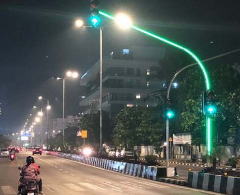 Во насока на зголемување на безбедноста, властите во Мумбаи поставија семафор чија конструкција е целосно осветлена со LED светла.