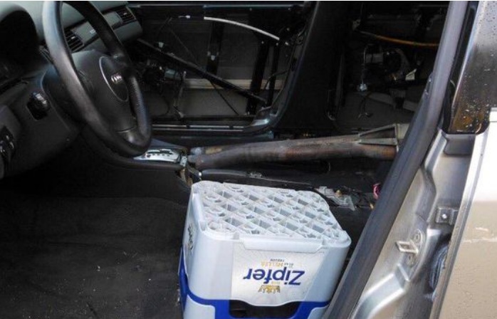 Автомеханичар од Горна Австрија одлучил со старо Audi A6 да помине четири километри од куќата до работилницата. Проблемот бил во тоа што возилото немало предни браници, лакови за тркала, а место возачко место механичарот ставил гајба од пиво.