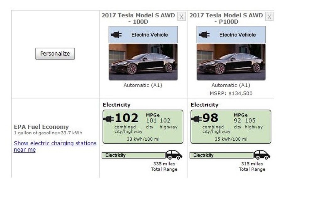 Американска EPA во своето последно тестирање објави кој електричен автомобил може најмногу да мине со едно полнење. Според последните тестирања моделот кој има 100 kWh батериски сет, и е со ознака 100D а е од компанијата Tesla постави нов рекорд. Автономијата на ова возило со едно полнење е 539 км. Тоа му успеа на моделот Tesla Model S.