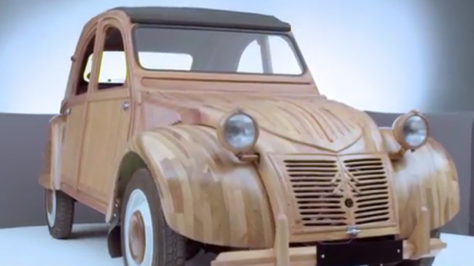 Но, она што го направи еден пензиониран столар заслужува огромна пофалба. Мишел Робилар работел шест години и вложил многу труд да го направи 2CV (deux chevaux – т.е. “два коња”), но од дрво.