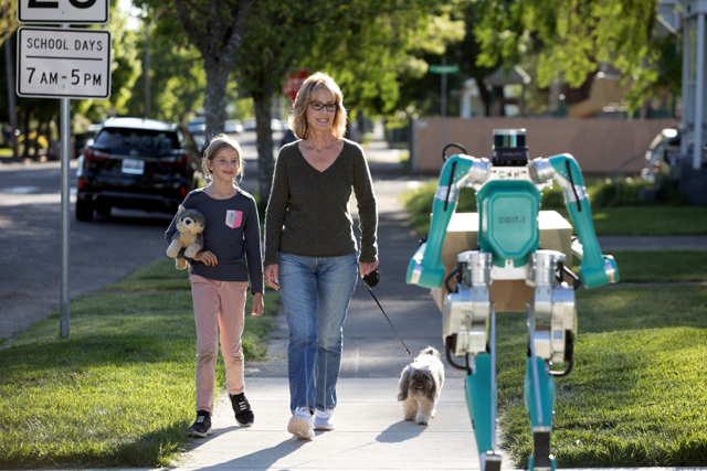 Blue Oval и компанијата Agility Robotics развиле автономен робот, кој пристига на адреса со беспилотен автомобил и доставува пратки до влезната врата на примачот.