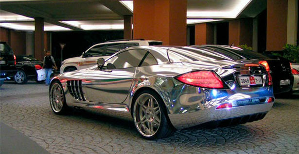 Возилото Mercedes SLS AMG видено пред еден хотел во Дубаи покажа невиден стандард за кој се вели дека е претеран дури и за оние со најистенчен вкус.