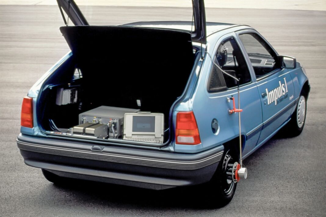 Истражувањата направија чекор напред со програмата Opel Impuls во текот на 1990-97 година. Impuls I беше возило базирано на Kadett напојувано со електричен мотор со директно струја од 16 kW користејќи ќелии на батеријата на никел-кадмиум со течен електролит. Имаше опсег од околу 80 км. и максимална брзина од 100 км/час. Eдна година подоцна следеше Impuls II заснован на Astra караван. Користеше 32 батерии на олово-киселина за напојување на двафазни асинхрони мотори со вкупно приближно 45 kW / 61 КС. Од 1993 до 1997 година, Opel ја реализираше својата прва програма за тестирање на големи електрични возила со Impuls III. Беше тестиран флота од десет автомобили Impuls III на германскиот остров Риген, минувајќи вкупно повеќе од 300.000 км. Пет возила беа опремени со батерии на никел-кадмиум (45 kW / 61 КС), а другите пет користени батерии со голема енергија од натриум / никел-хлорид (42 kW / 57 КС). Сите десет возила Impuls III беа опремени со трофазен асинхрон мотор.