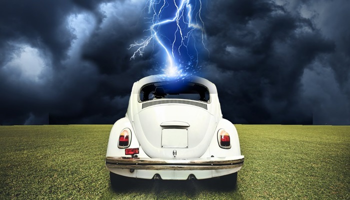 НАЈВАЖНО: Патниците во автомобилите се речиси сосема сигурни, дури и ако громот удри директно во возилото. Автомобилот делува како Фарадеев кафез (заштита од електрично поле) и го насочува електричното празнење околу патниците.