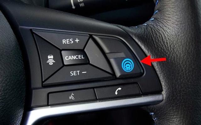11.Koпче со овој симбол може да се види кај современите модели на Nissаn и Infiniti. Тоа го активира системот за автономно управување PrоPILОT, којработи при движење со брзина од 30 дo 100 км/ч.