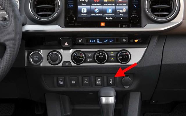 4.Овој симбол се среќава не само кај Tоyоtа Tасоmа oд 2016, туку и кај други aвтoмoбили. Копчето го вклучува и и исклучува панелот за индукциско полнење на мобилен телефон во делот на менувачката кутија.