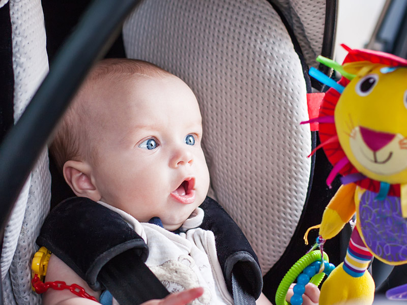Пред седнување во автомобил морате возилото да го направите удобно и безбедно за детето. Бебето мора да има свое седиште. Држењето на дете во раце не е сигурно, дури и ако сте врзани со појас. Во случај на несреќа можете да се повредите и вие и детето, кое во најлош случај може да ви испадне од рацете.