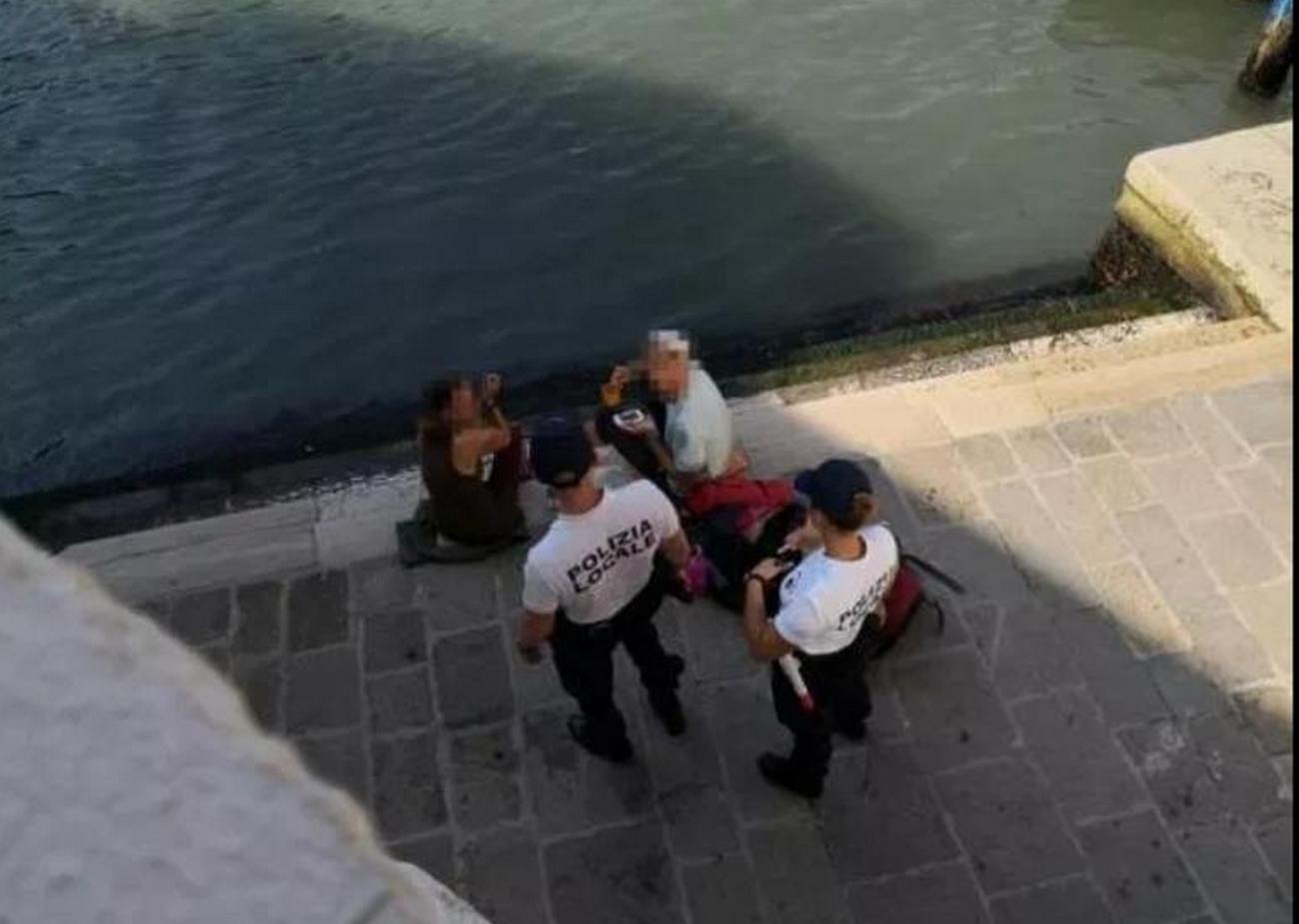 За она што тие го сториле биле пријавени од некој локален жител. Биле приведени во полицја, а казната е за непримерно донесување. Во Венеција има низа казни како н апример за пикник н аодредени локации, капење во фонтаните или шетање без маички. Меѓу другото можете и да бидете протерани од градот.