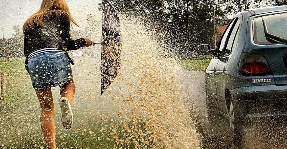 И во двете земји е потребно да е прилагоди брзината во зависност од водата која се собира на патиштата во текот на дожд, за случајно со својот автомобил да не истуширате некој од пешаците покрај патот.