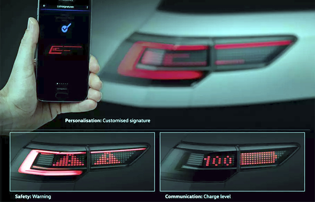 Со помош на посебна мобилна апликација на предните фавори може да се појават различни цртежи, кои имаат за цел да ги предупредат другите учесници во сообраќајот, како што е случај со задните светла.