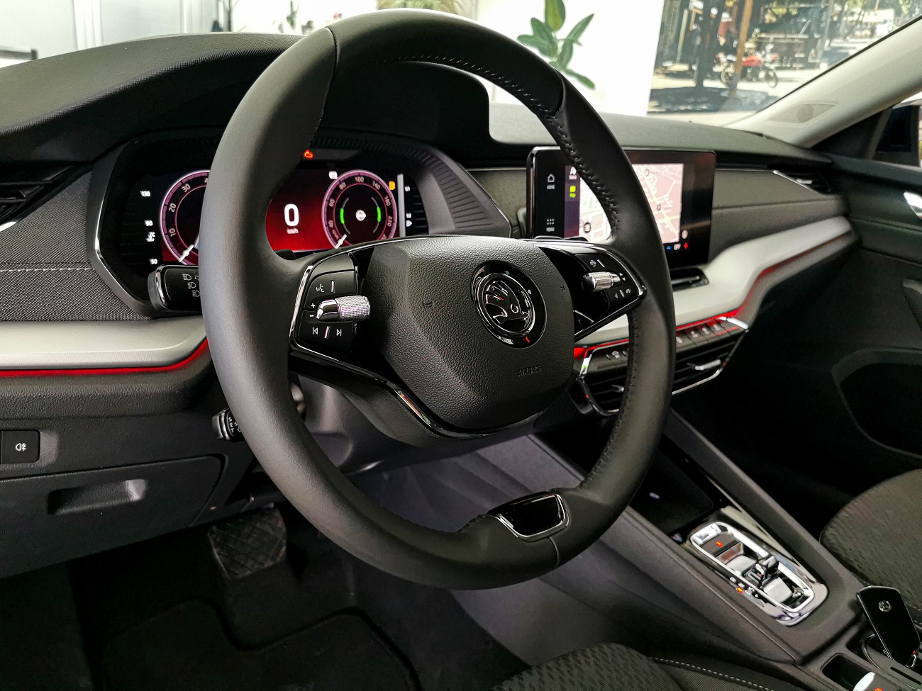 На централната конзола се наоѓа 10 инчен инфозабавен систем, со големи и јасни икони и одлични shortcut копчиња за едноставно ракување. Функциите на системот можат да бидат контролирани со гестикулации или во комуникација со Лаура, вашиот личен, ŠKODA виртуелен асистент.