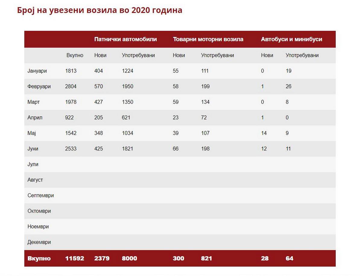 Сепак треба да се напомене дека овој јуни има најмалку увезени возила по јуни 2013 година кога беа увезени 2.498 возила од кои само 261 возило беше ново.